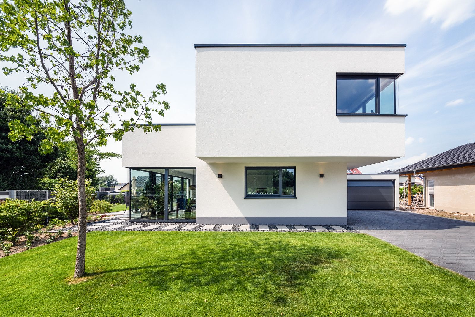 Der Bauherr wünschte eine moderne, minimalistische Architektursprache und – sehr vorausschauend – die Möglichkeit, im Alter auf einer Ebene barrierefrei wohnen zu können.